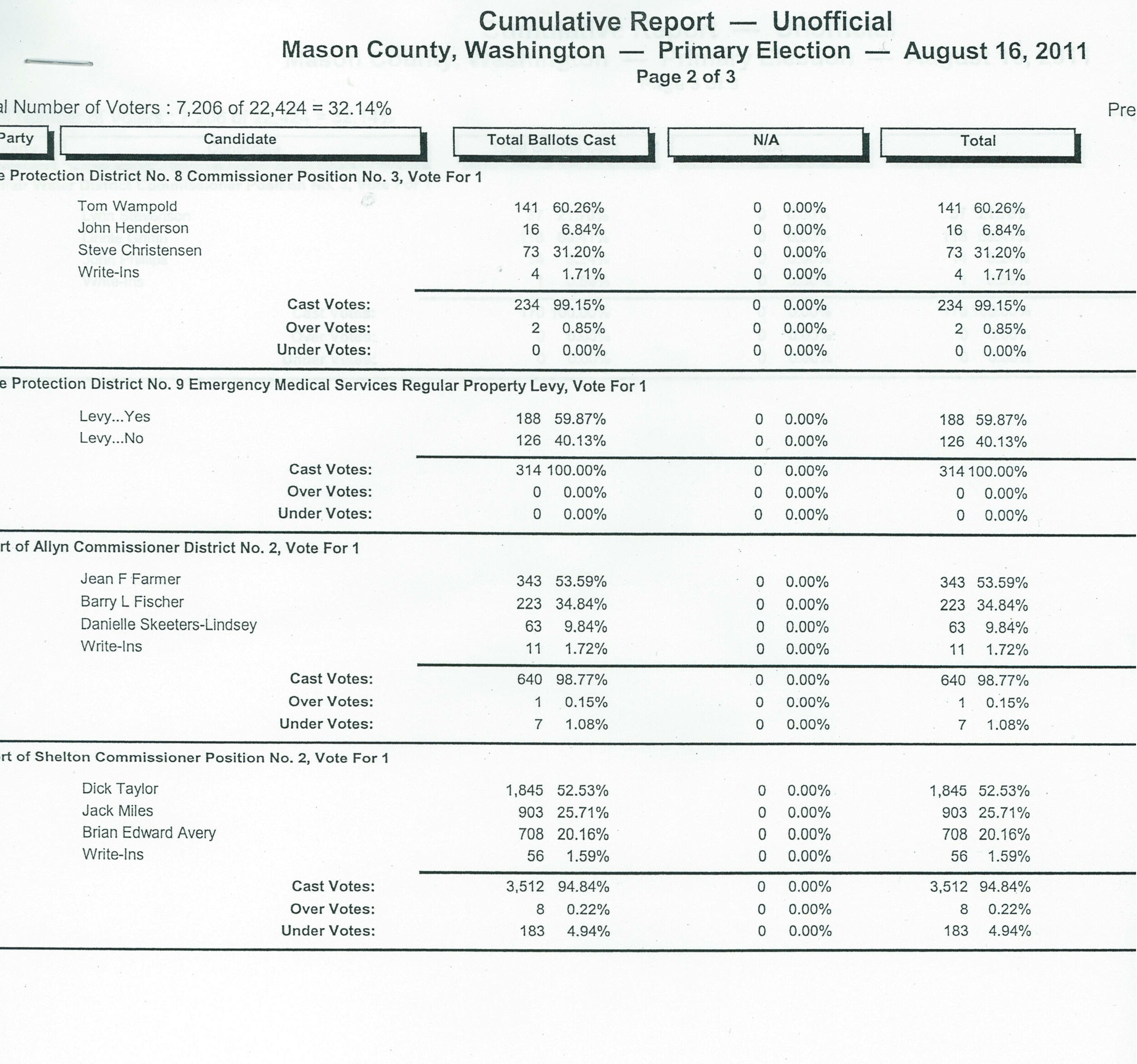 8-16-11 Ballot Returns, Shelton Gently Weeps