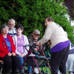 This next to the last free concert in the season’s series was composed of Paul Barber on the electronic keyboard and guitar, Ron Grinnell on drums and trumpet. Both, as it so happens, are teachers at the Choice High School in Shelton. Their music is eclectic–rooted in many of the popular songs from the mid-20th century, the 60’s, 70’s & 80’s. All were familiar to the seniors and residents of Alpine Way in their audience.