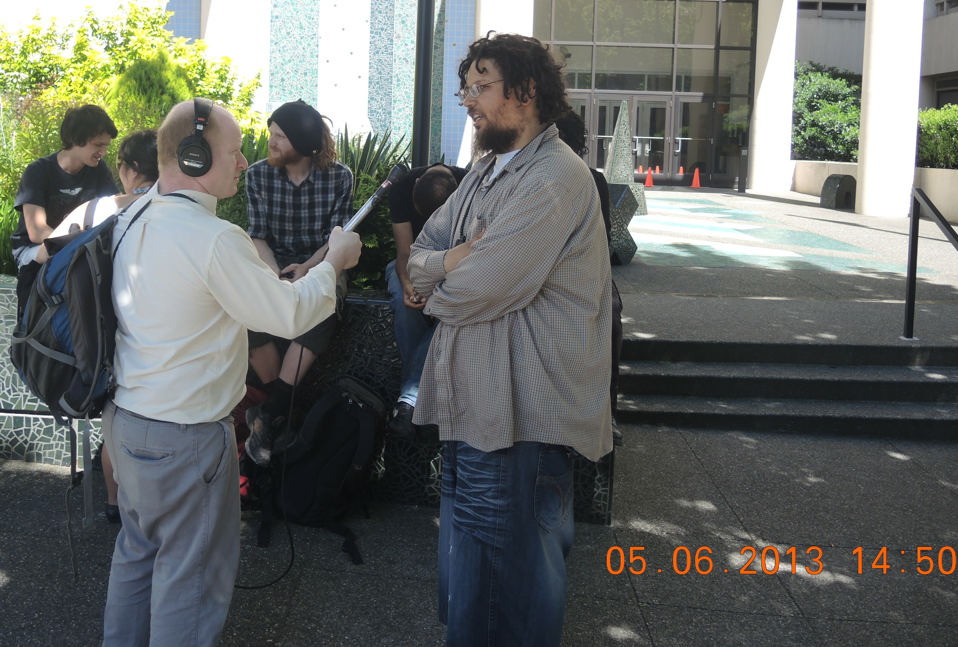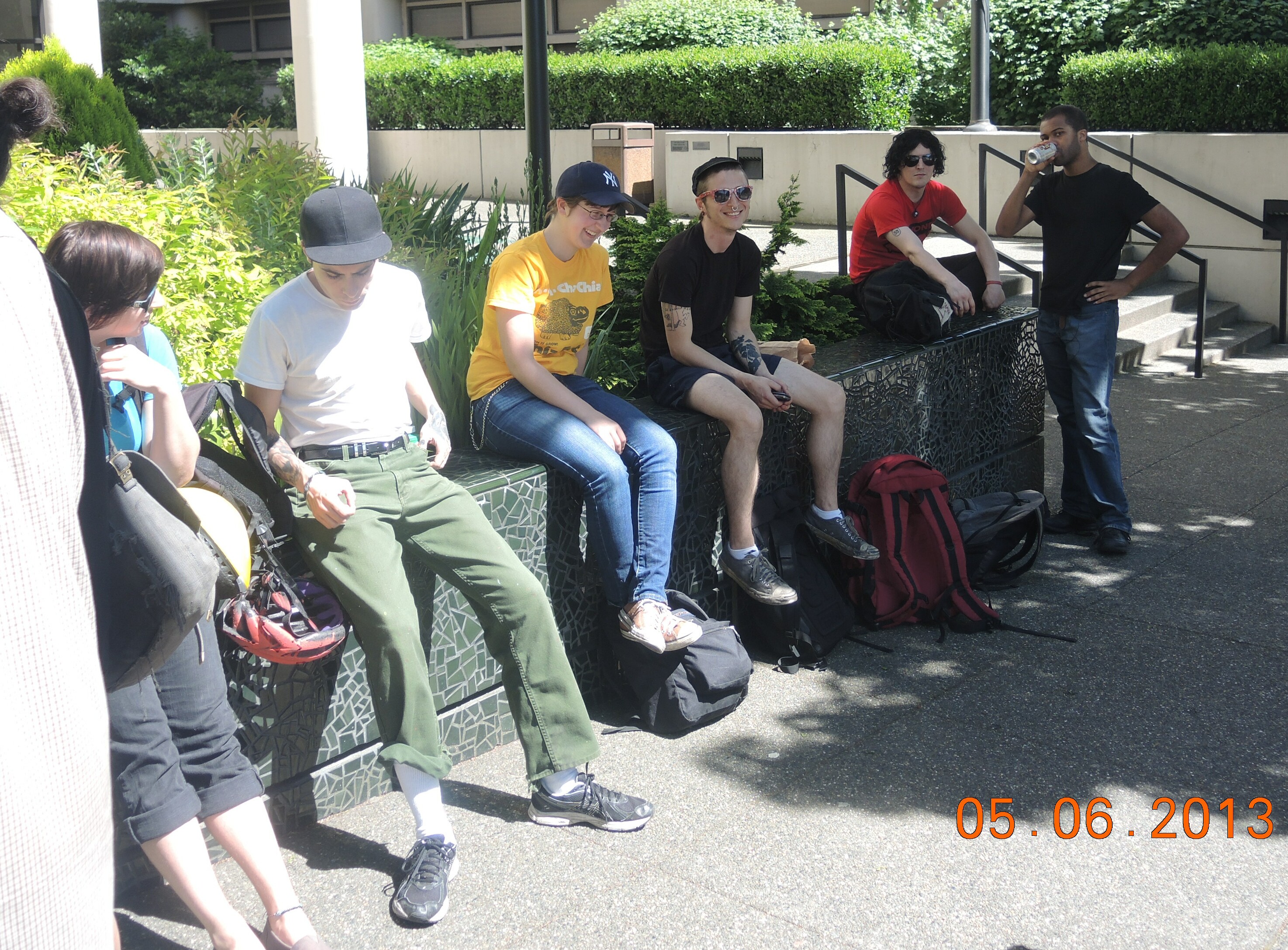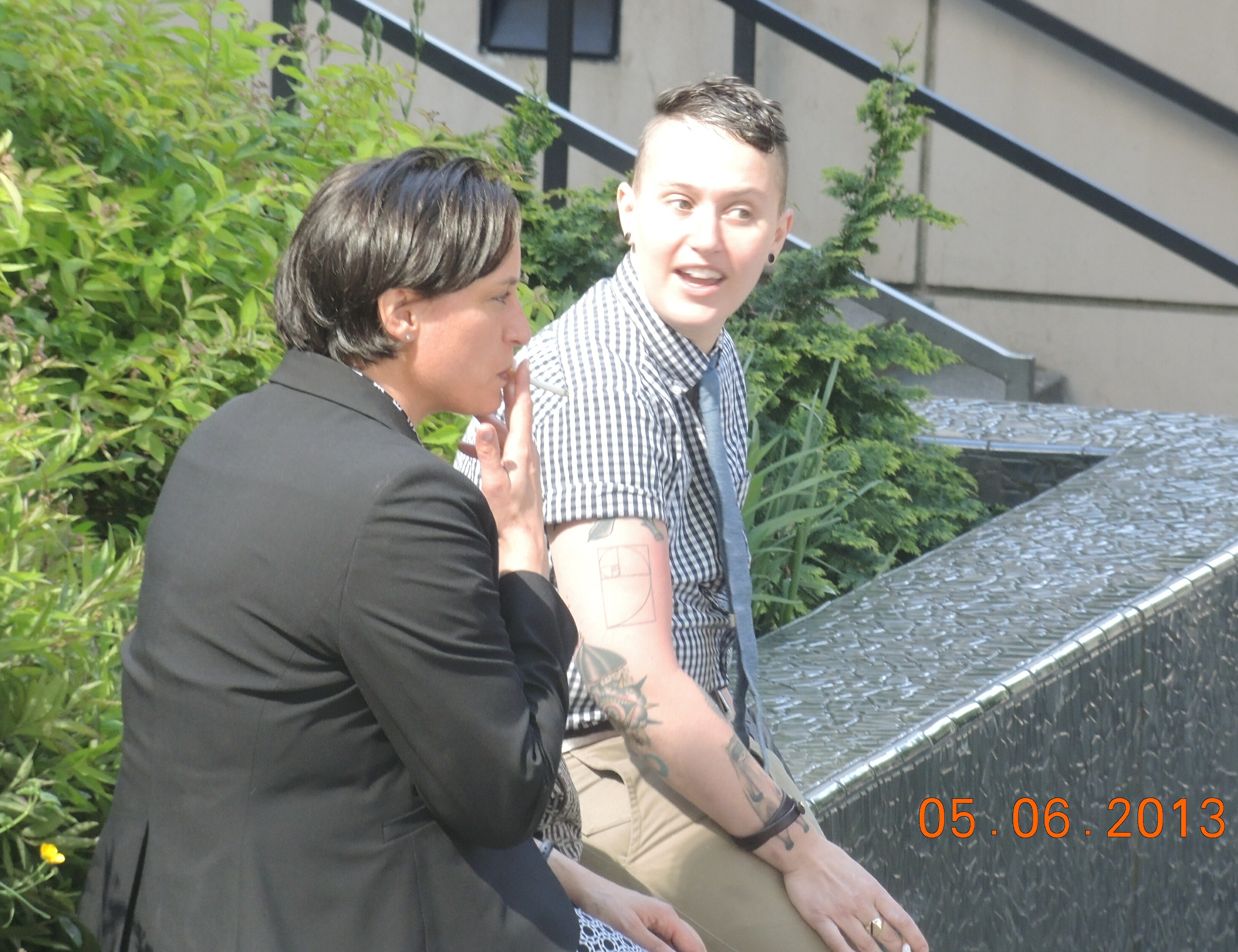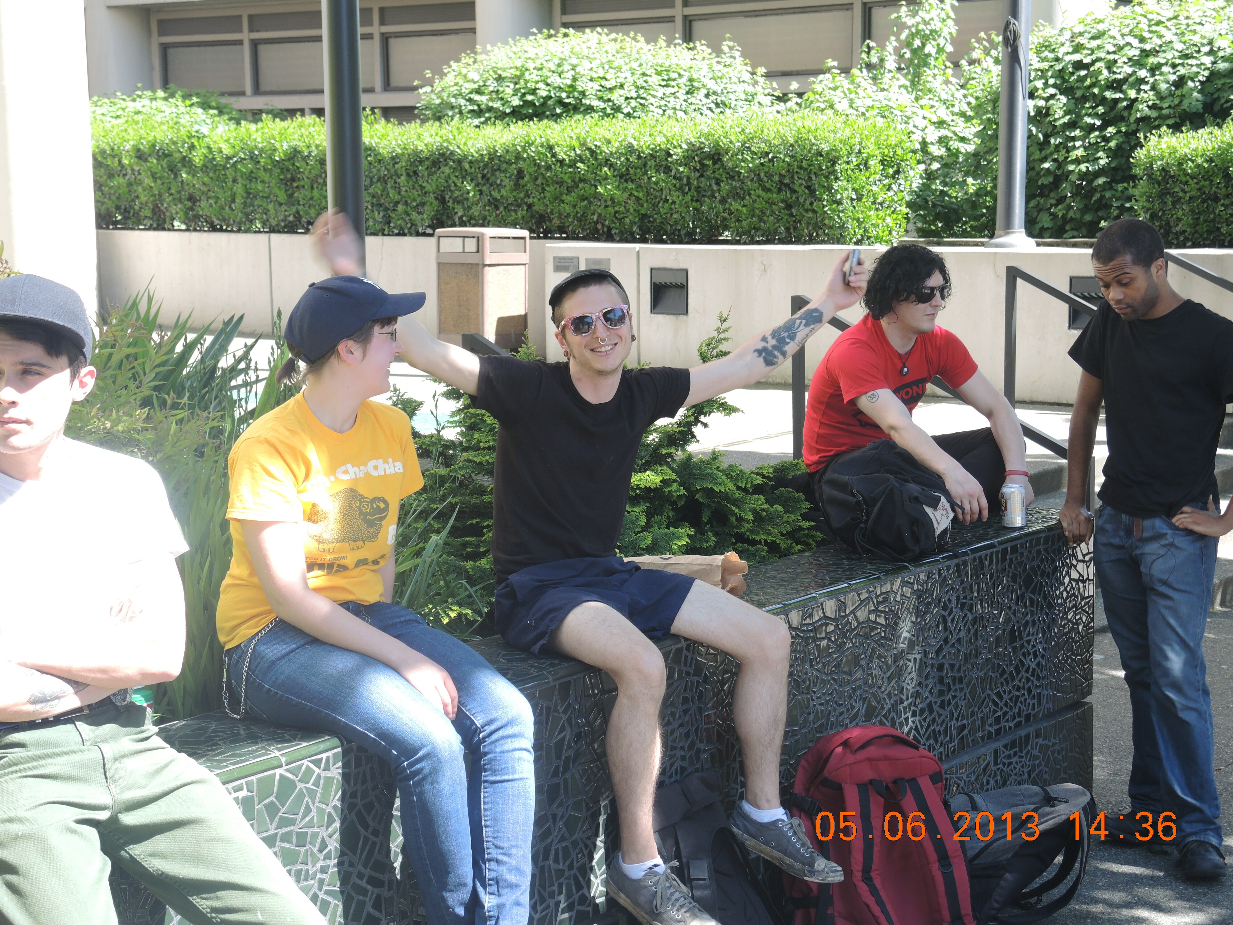 Cameron?(red hair dreads) w/p@ls at 5-6-13 Seattle County Jail Courthouse plaza