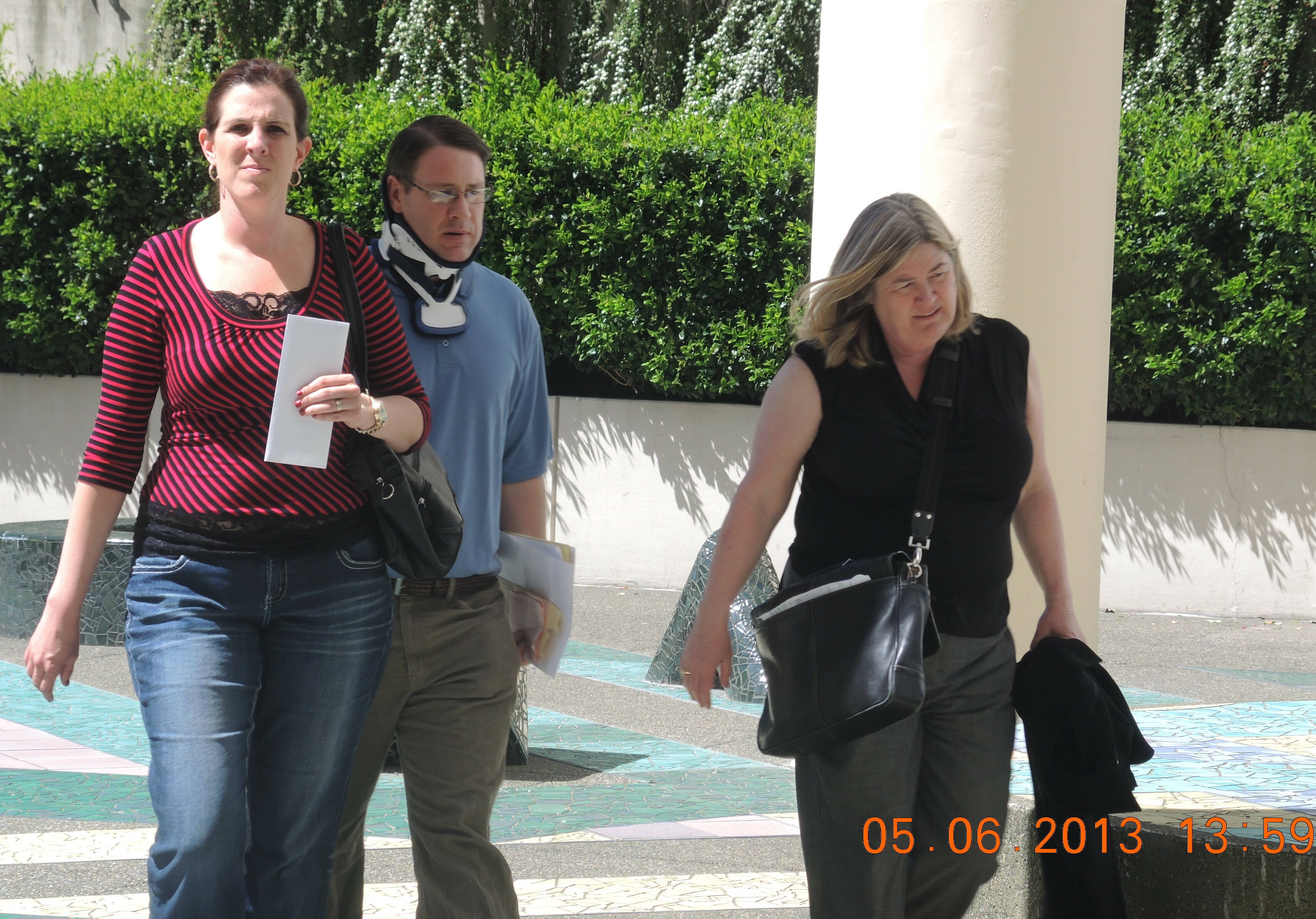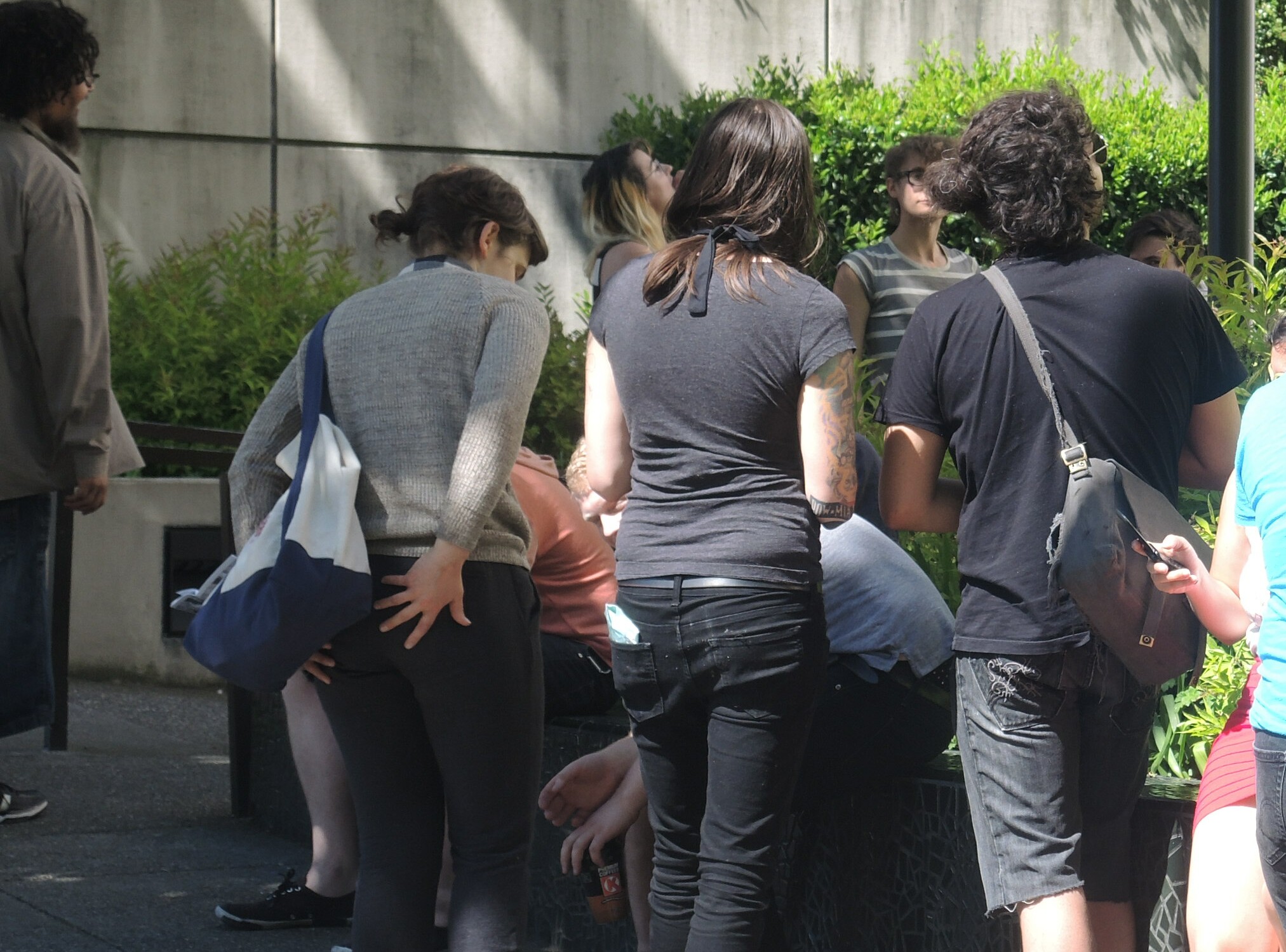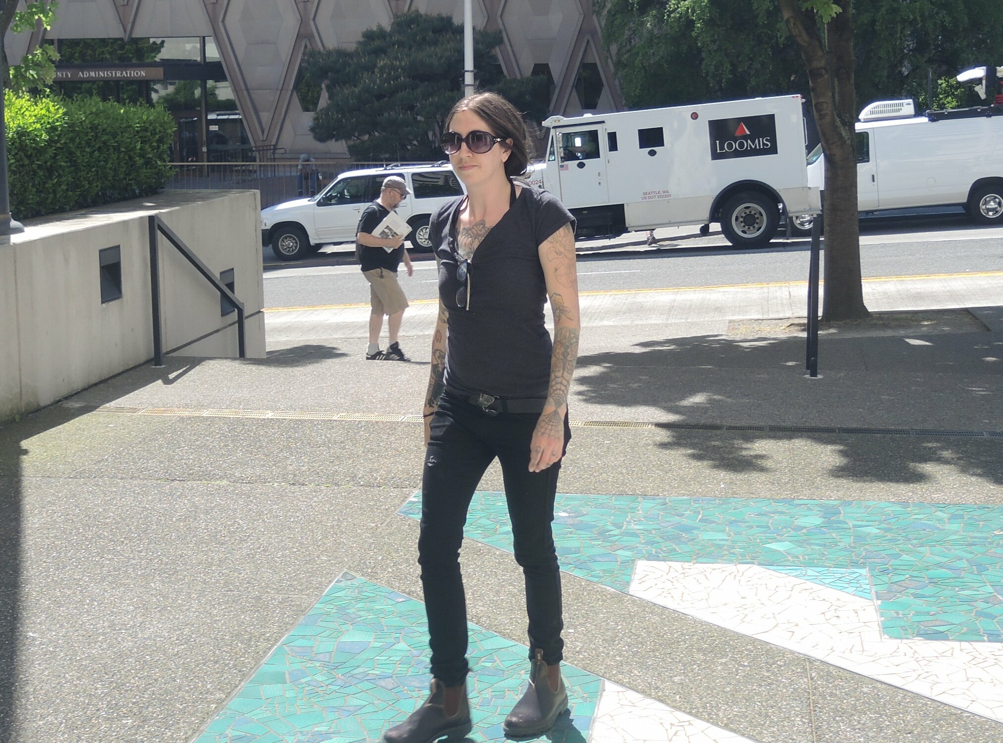 Having been told the courtroom was ‘full’ and contrary to some mainstream press reports alleging no (A)narchist supporters came to the Seattle’s King County jailhouse courtroom in solidarity with defendants accused of felonies arising from the City’s 2013 May Day demonstrations, over a dozen sat in the jailhouse courtyard at 5th & James in a show of support.