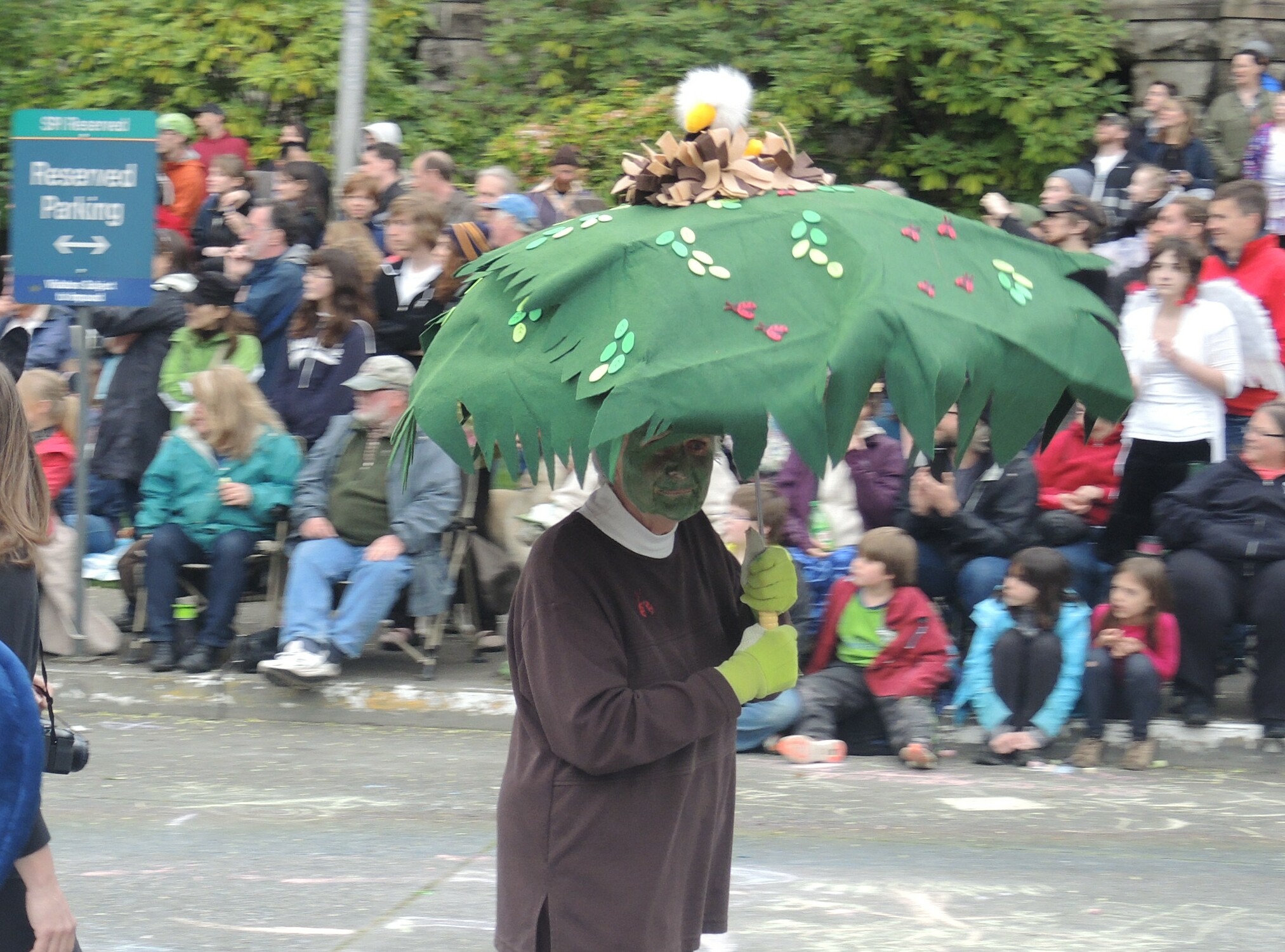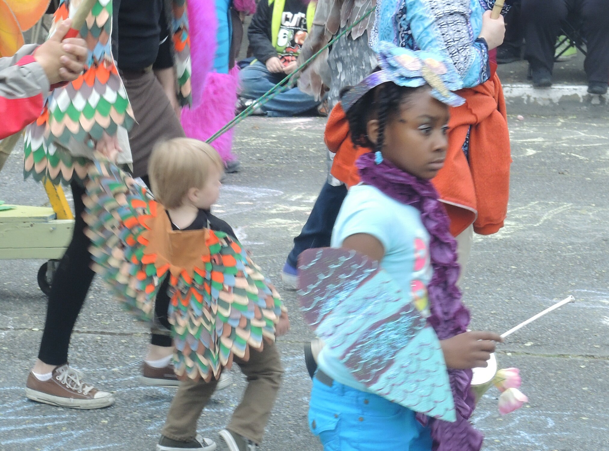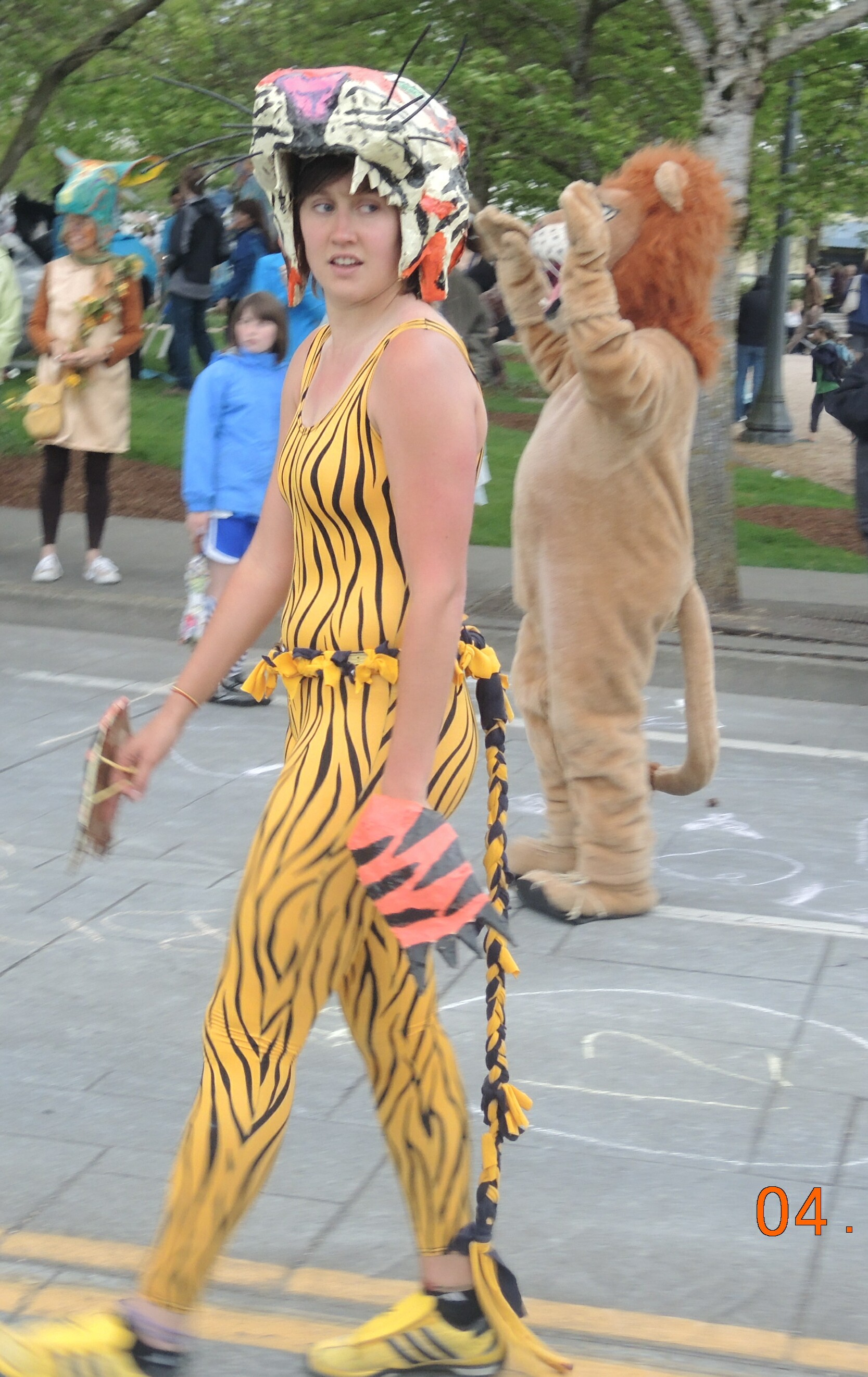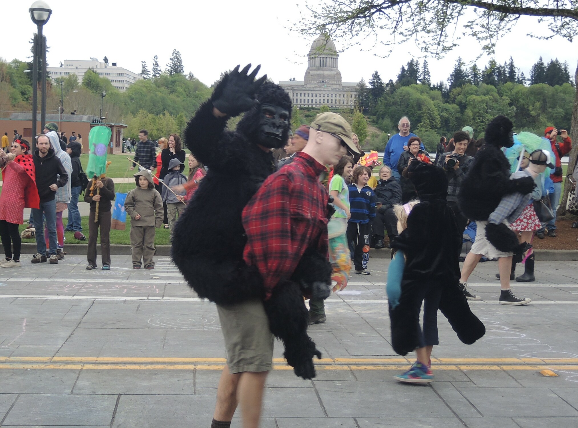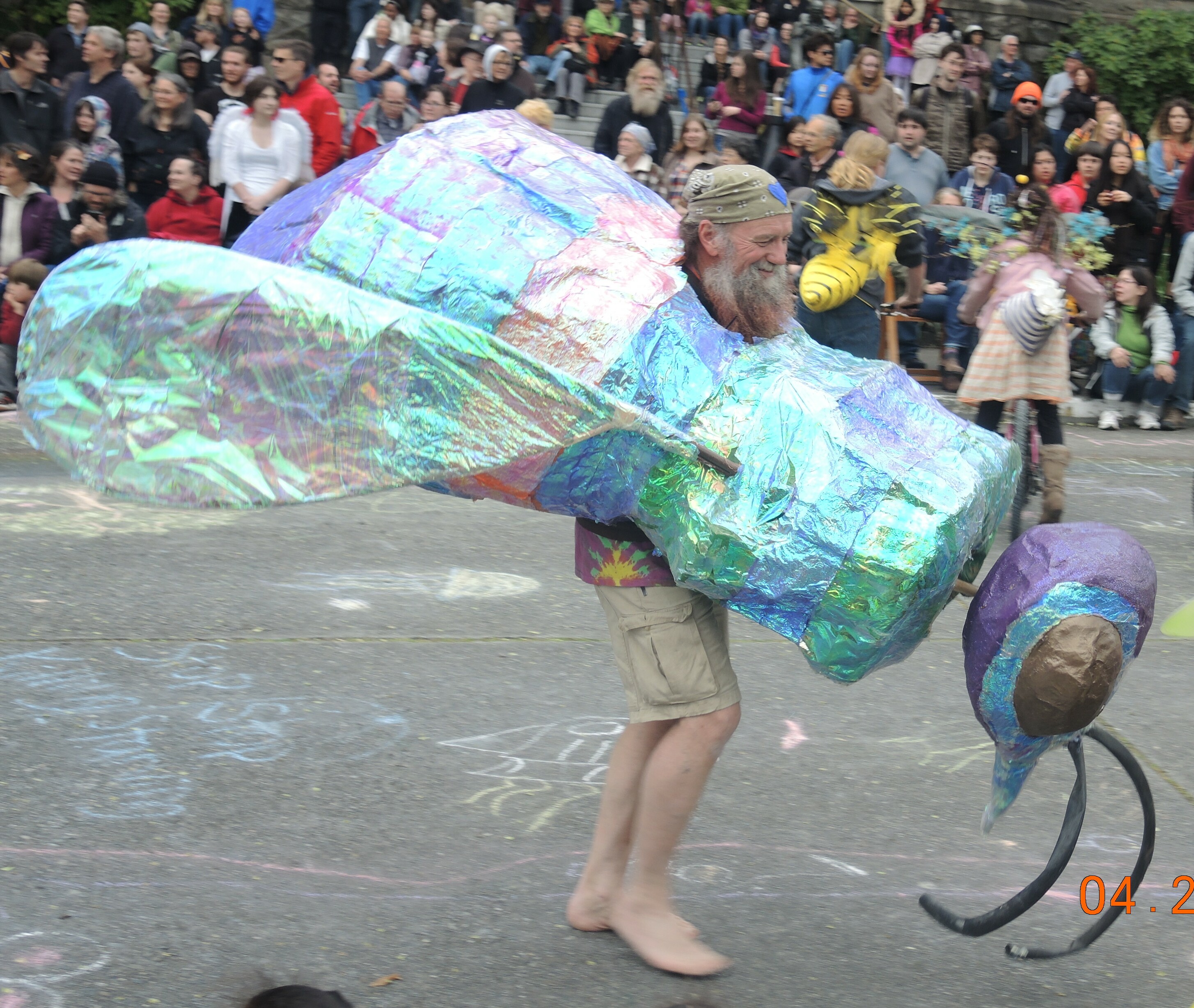 Sadly, this year’s Procession of the Species had a certain je ne se quois tension that might be attributed to the Boston Marathon bombings, the Strong (A)rm Robbery-Assault on a photojournalist @ a TESC public event days earlier, a sense of foreboding that Olympia could be on the (A)narchist menu for this coming May Day actions, a sense some in the community have of being hunted for their affiliation with criminality associated with certain (A)narchists, or any of these. A camera reveals much…more than the subject realizes. There was a look on the faces of many attendees that wasn’t present in previous years. Time will tell as the City’s security apparatus gears up to try to protect property as well as prevent force and fraud from a group openly declaring war on the State, society, its institutions, its businesses, private property, the notion of ‘rights’ or law, as well as many of its citizens including photojournalists.