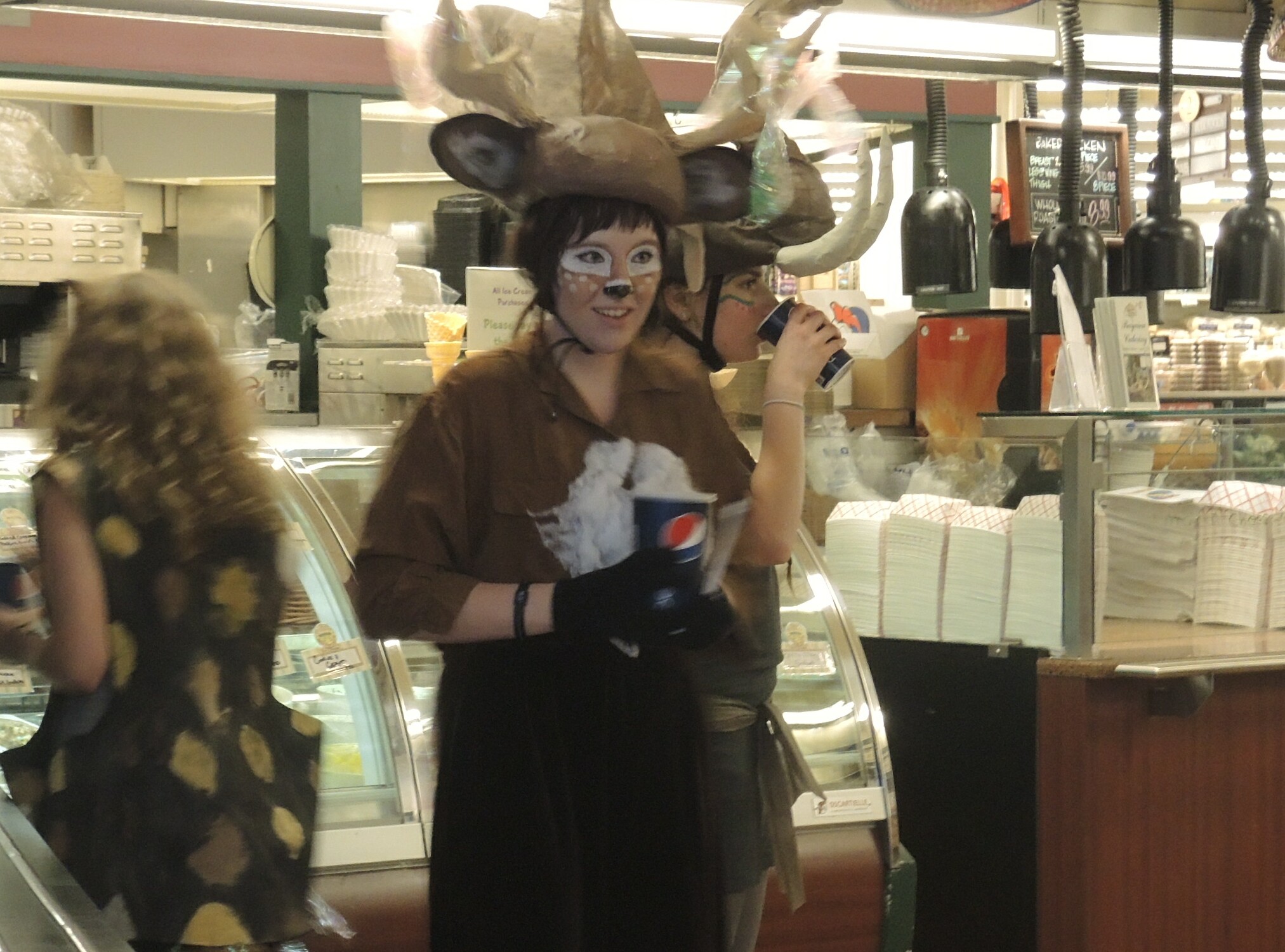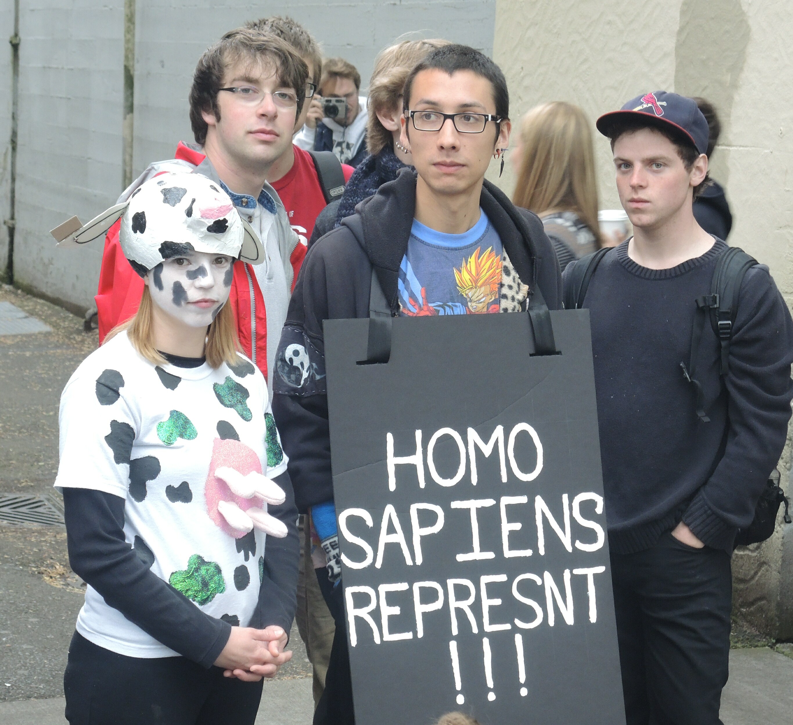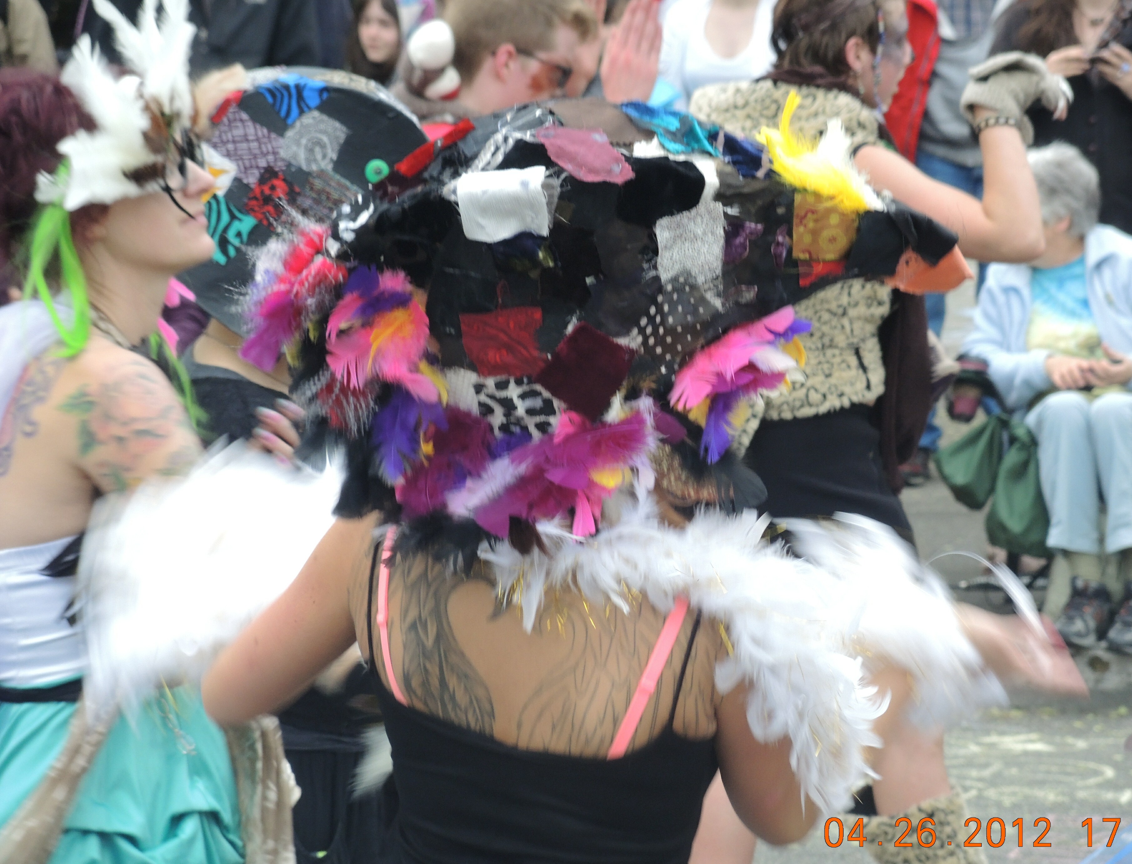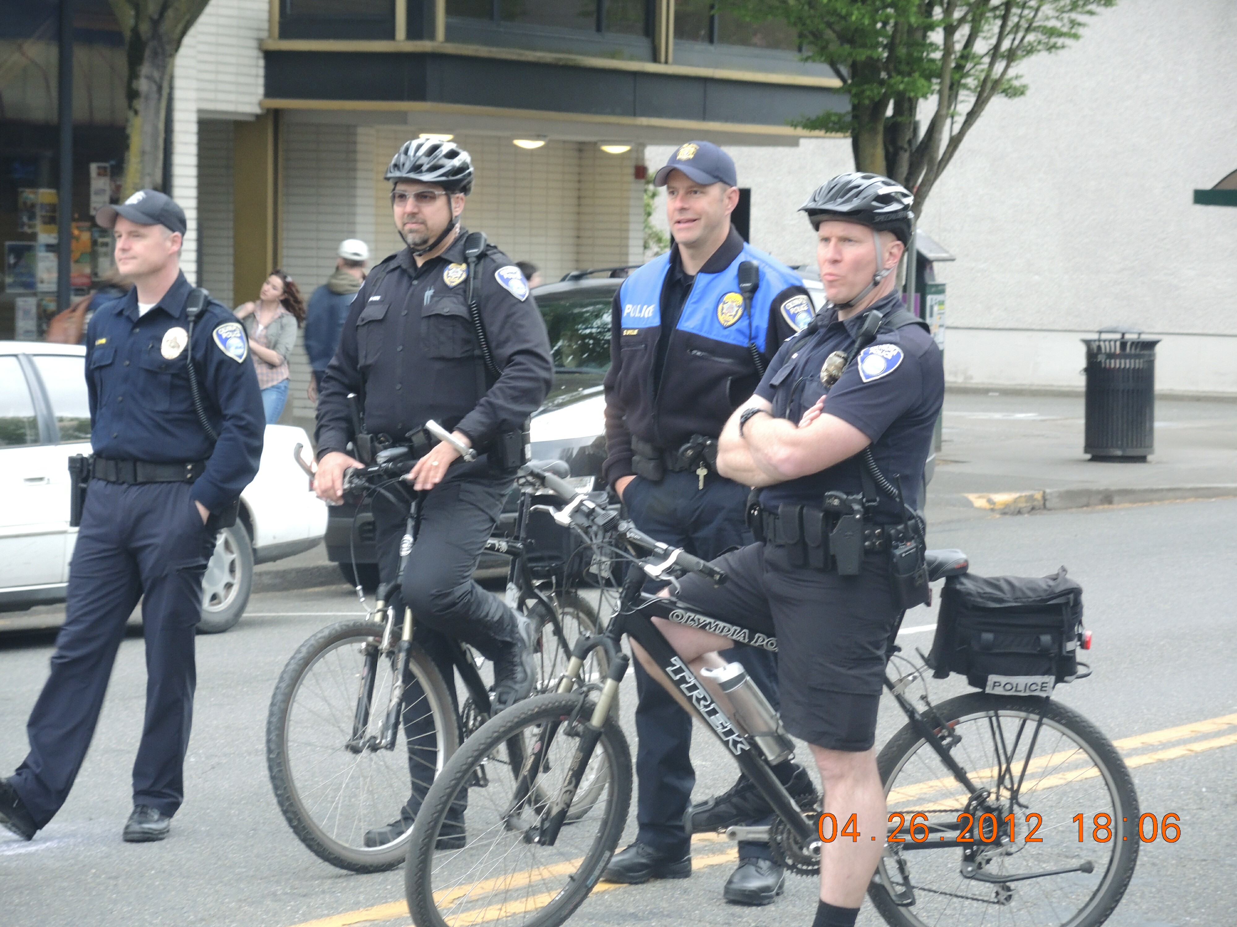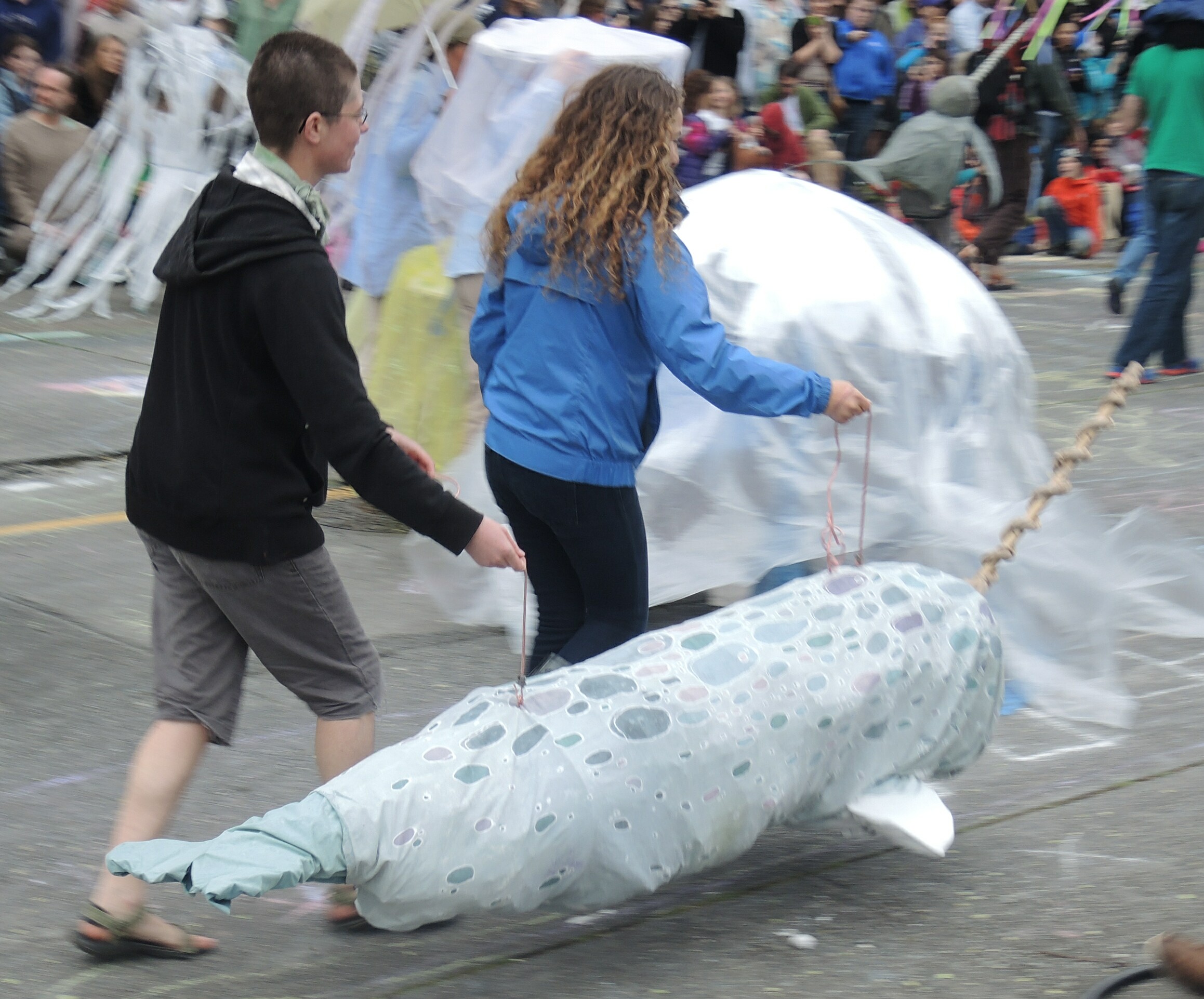 Sadly, this year’s Procession of the Species had a certain je ne se quois tension that might be attributed to the Boston Marathon bombings, the Strong (A)rm Robbery-Assault on a photojournalist @ a TESC public event days earlier, a sense of foreboding that Olympia could be on the (A)narchist menu for this coming May Day actions, a sense some in the community have of being hunted for their affiliation with criminality associated with certain (A)narchists, or any of these. A camera reveals much…more than the subject realizes. There was a look on the faces of many attendees that wasn’t present in previous years. Time will tell as the City’s security apparatus gears up to try to protect property as well as prevent force and fraud from a group openly declaring war on the State, society, its institutions, its businesses, private property, the notion of ‘rights’ or law, as well as many of its citizens including photojournalists.