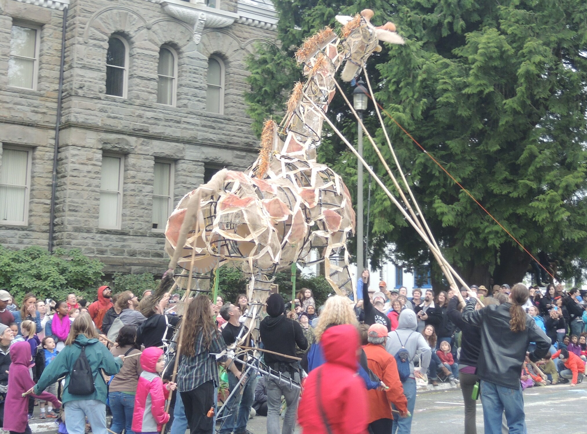 A non-commercial tradition of over 20 years, Oly folks kick off their shoes to celebrate our planet and all living things in a madcap parade suitable for young and old alike. Though Olympia was the cradle of this theme, it has found a new home in cities all over the world eager to emulate the good vibes, the reminder that all living things, great and small, are kindred spirits.