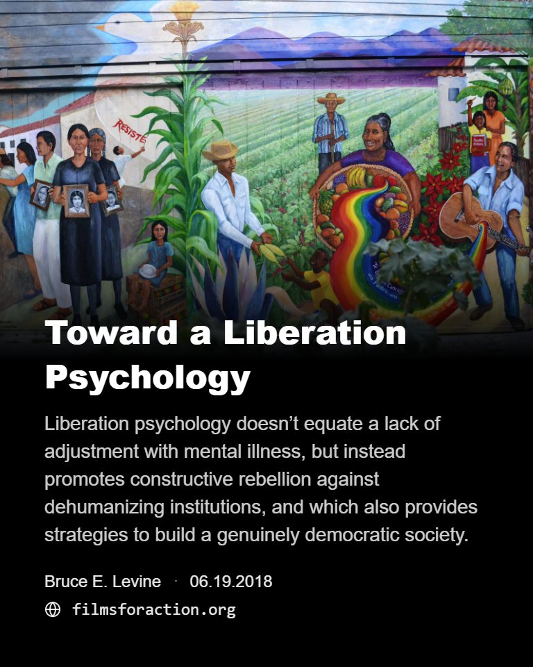 When I first heard the term liberation theology (in opposition to a theology that fosters compliance with the status quo), I thought there should also be a liberation psychology—a psychology that doesn’t equate a lack of adjustment with mental illness, but instead promotes constructive rebellion against dehumanizing institutions, and which also provides strategies to build a genuinely democratic society.