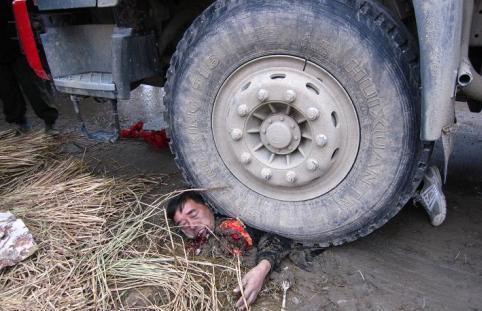 Villagers found his body a short while later, mangled under the front wheel of a construction truck. The fat tire had crushed Qian’s chest and neck, coming to a rest at the back of his head — the pressure sent blood and flesh spurting from his mouth. Qian’s face lay in the cold mud, eyes shut.