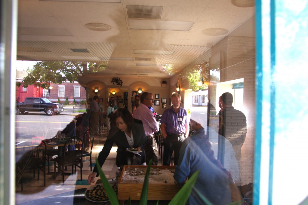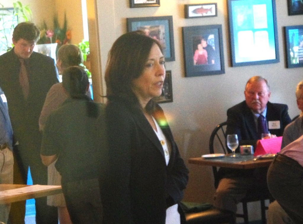 A Shelton Senior, having just enjoyed a seafood dinner w/Senator Maria Cantwell, expresses surprise upon learning the shellfish from nearby Oakland Bay are tainted by some of the worst levels of Dioxin contamination in the Puget Sound.