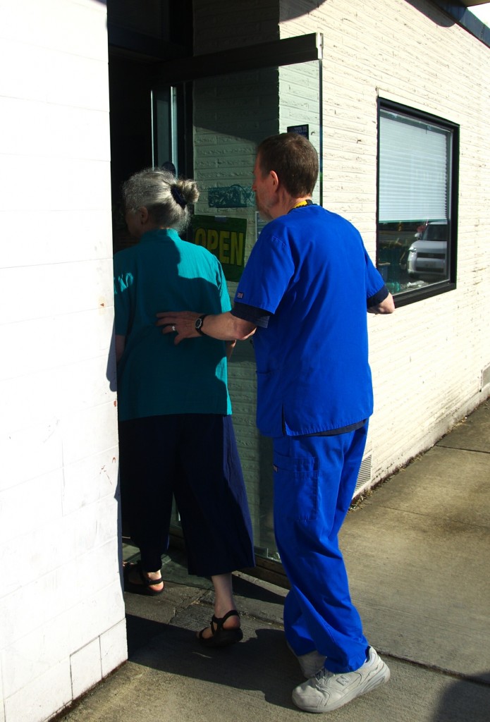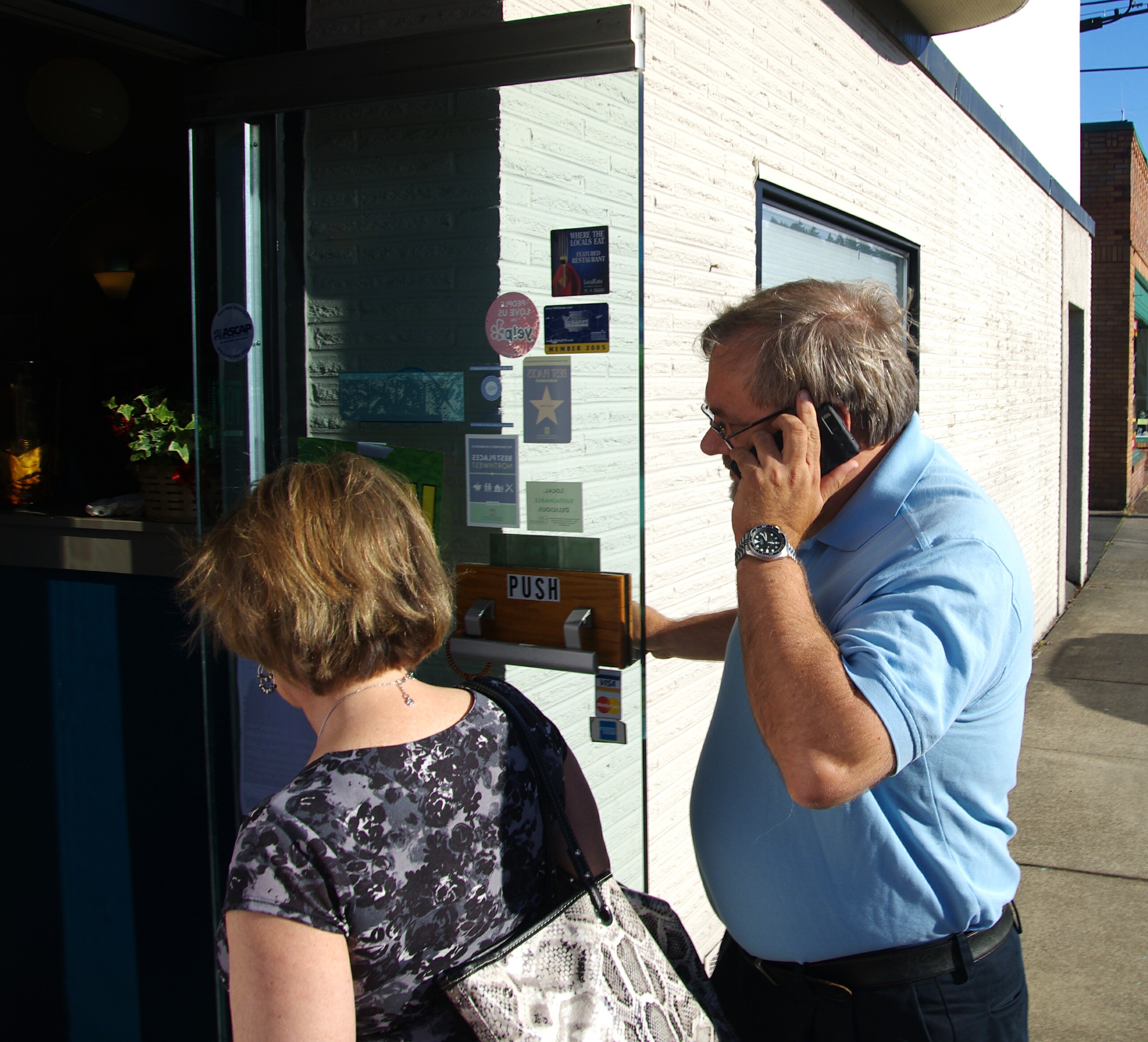 John Cox and his wife, Christine Armand, collected signatures on a petition directly appealing to Senator Cantwell to reconsider her position supporting bio-fuel bisomassacre while hamstringing the federal EPA from enforcing regulations protecting the nation’s environment and air quality. As the hour grew late, they nervously approached and entered the ‘closed’ restaurant to hand deliver the signatures to the Senator, but were met immediately by staff blocking their path. Senator Cantwell intervened, accepting the document and briefly uttered political banalities while never once waving to or acknowledging the little people of Shelton who’d come to acknowledge/petition her!