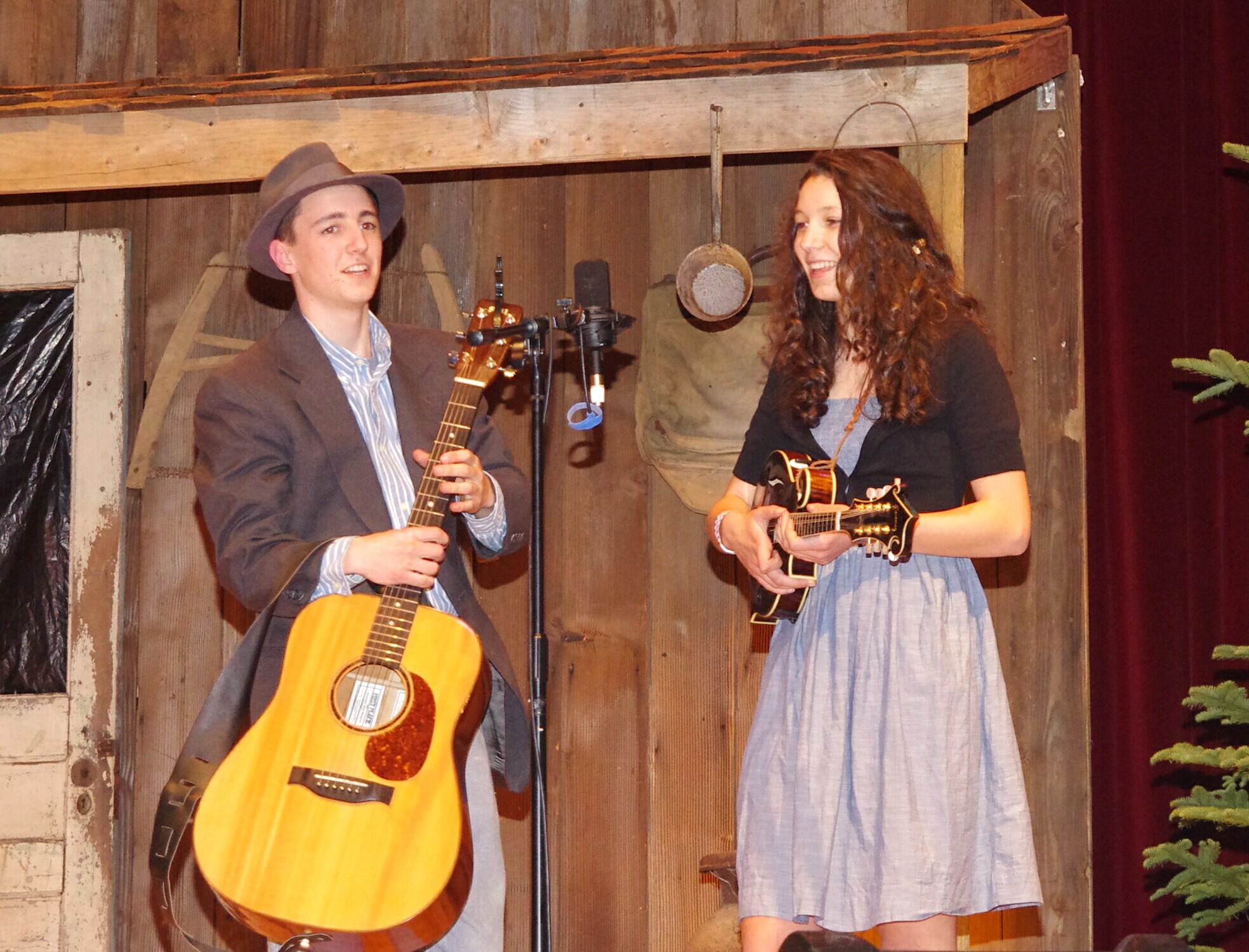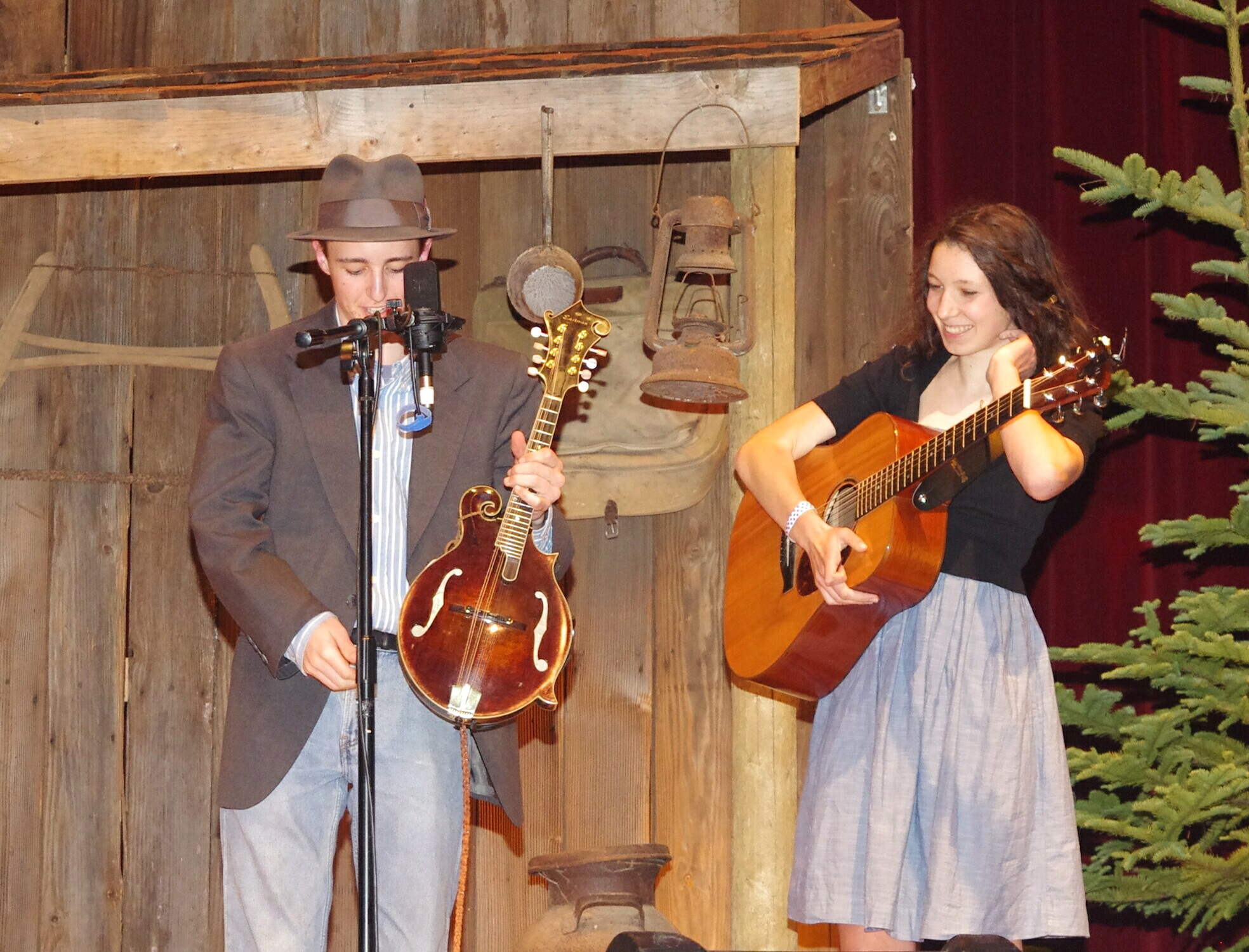 Luke and Kati Dewhirst. This brother-sister duo came from the most original and promising local bluegrass group to play locally in years, the Dewhirsts (a family band rich in musical talent and dedication) recently broke up after releasing a stunningly fresh album of mixed traditional as well as original compositions. Luke (at 16, winner of a national banjo contest 2 years ago) and Kati Dewhirst charmed the audience with their warm performance. Greg Linder signed Luke to play with Runaway Train shortly after Luke (always nattily clad on stage) received the prestigious recognition.