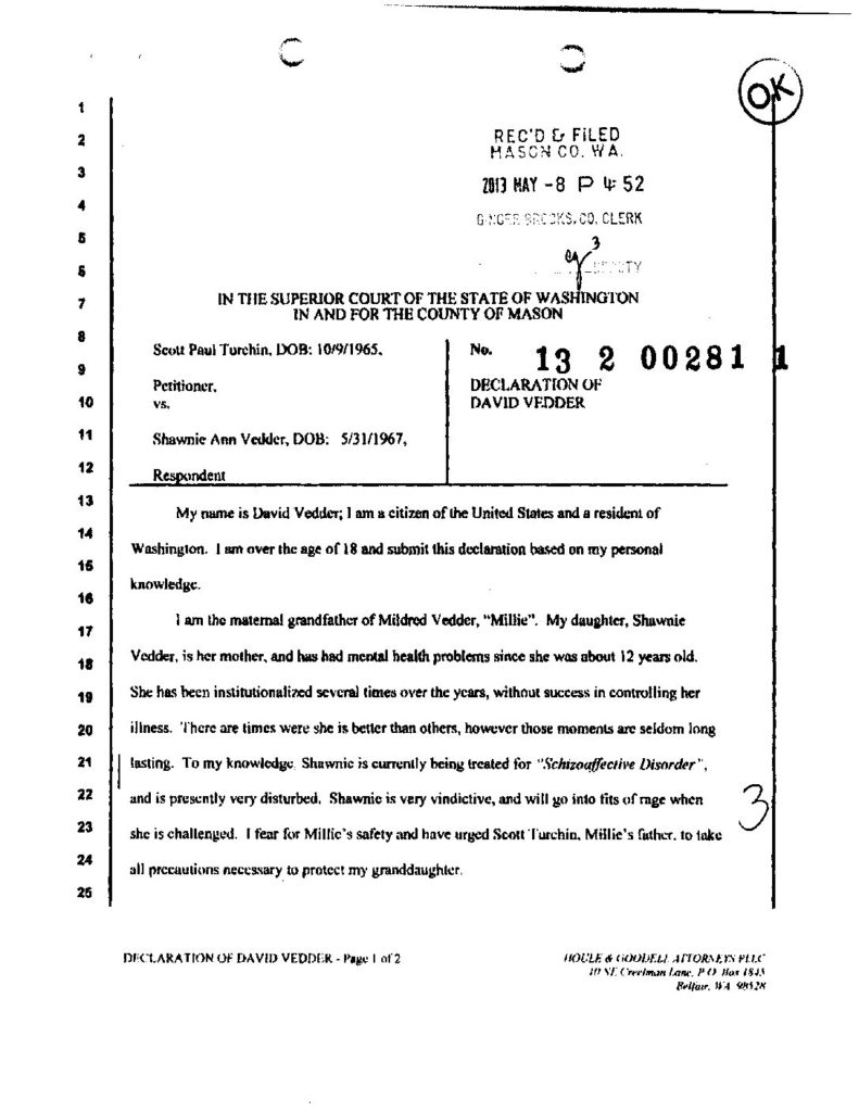 David Vedder’s Declaration