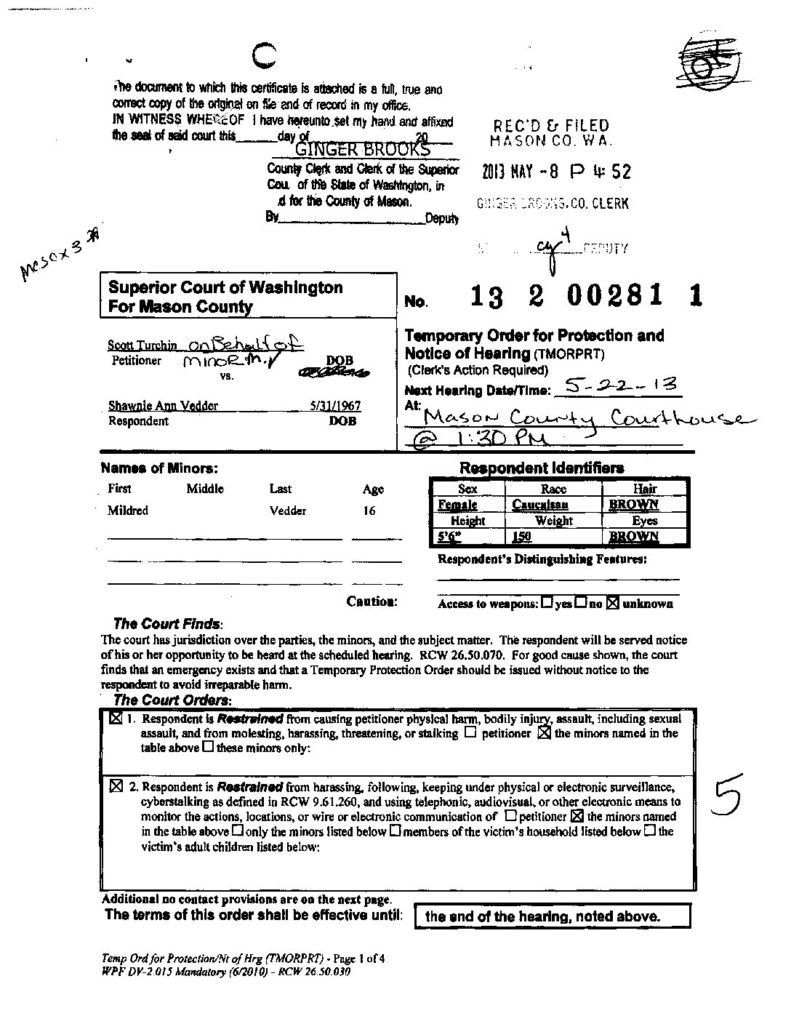Shawnie has a business–selling her photographs and a WA State business license claiming as much. She has 2 daughters and 3 ex-husbands, the last having died prior to her vacationing in New Zealand some months ago. When he was yet alive, but ill, she found the time and $ to tour China. She published beautiful pictures of both trips. The cameras she uses are among the best and most expensive. She purchased a drone for aerial shots and 4WD vehicles for making to the many distant trailheads she regularly visited to start her various assaults on surrounding mountain peaks–after all, Shelton likes to describe itself as the gateway to the Olympics.