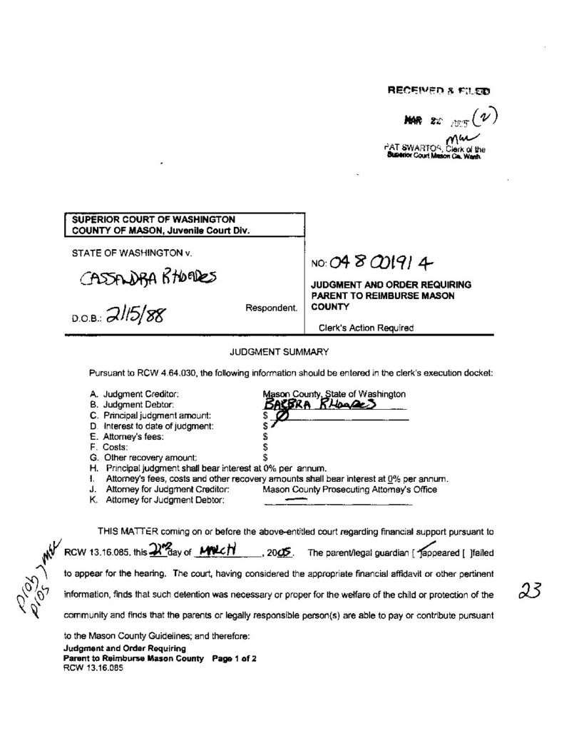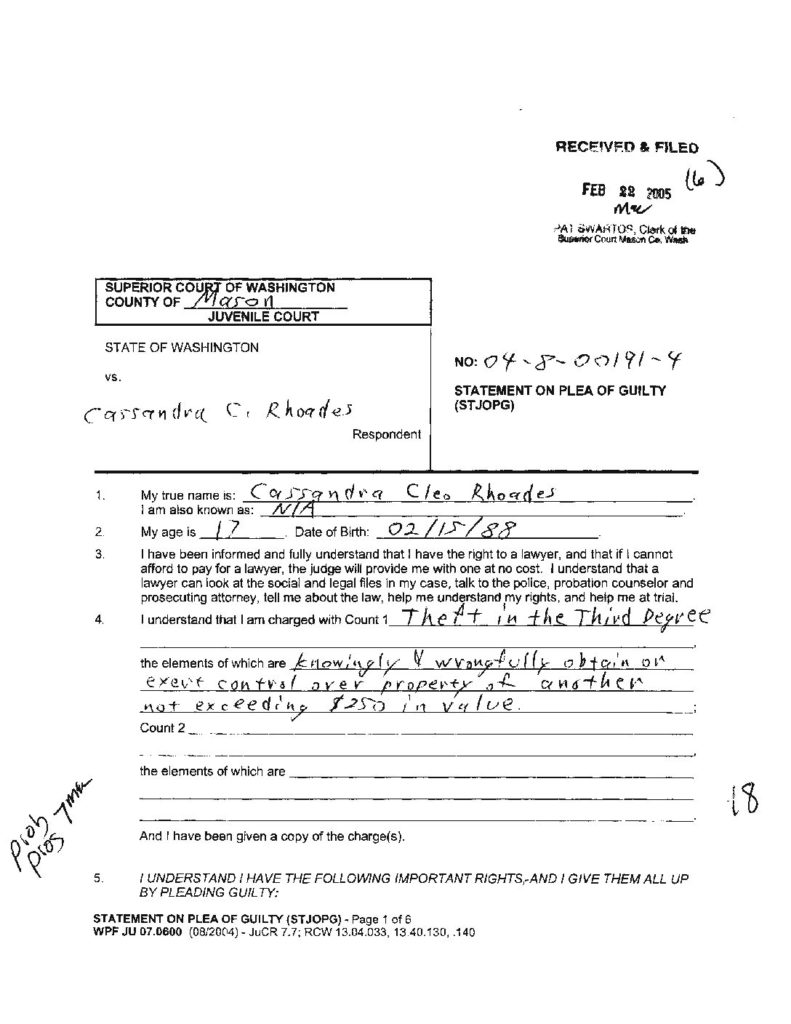 3 STATE OF WASHINGTON VS RHOADES, CASSANDRA C Info