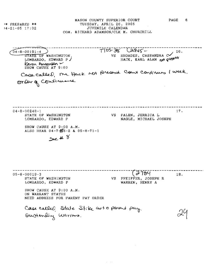 • 05/03/2005 JC Offender Show Cause