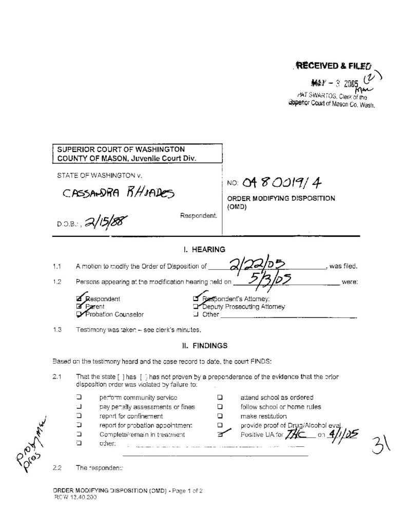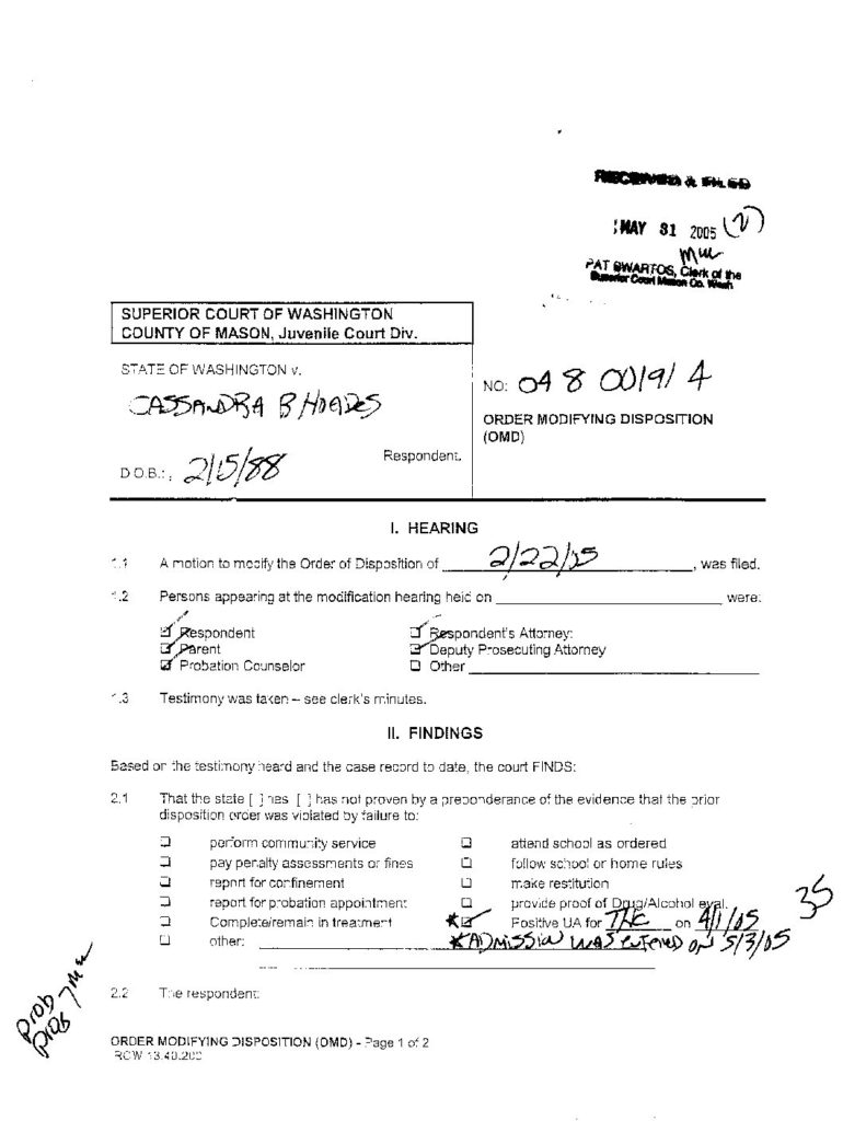 35 STATE OF WASHINGTON VS RHOADES, CASSANDRA C OrdModDisp