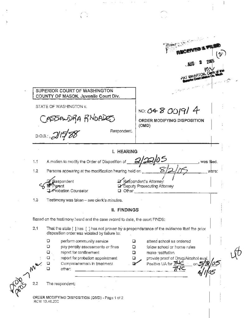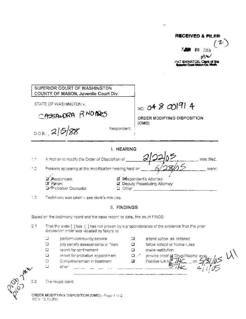 48 STATE OF WASHINGTON VS RHOADES, CASSANDRA C OrdModDisp