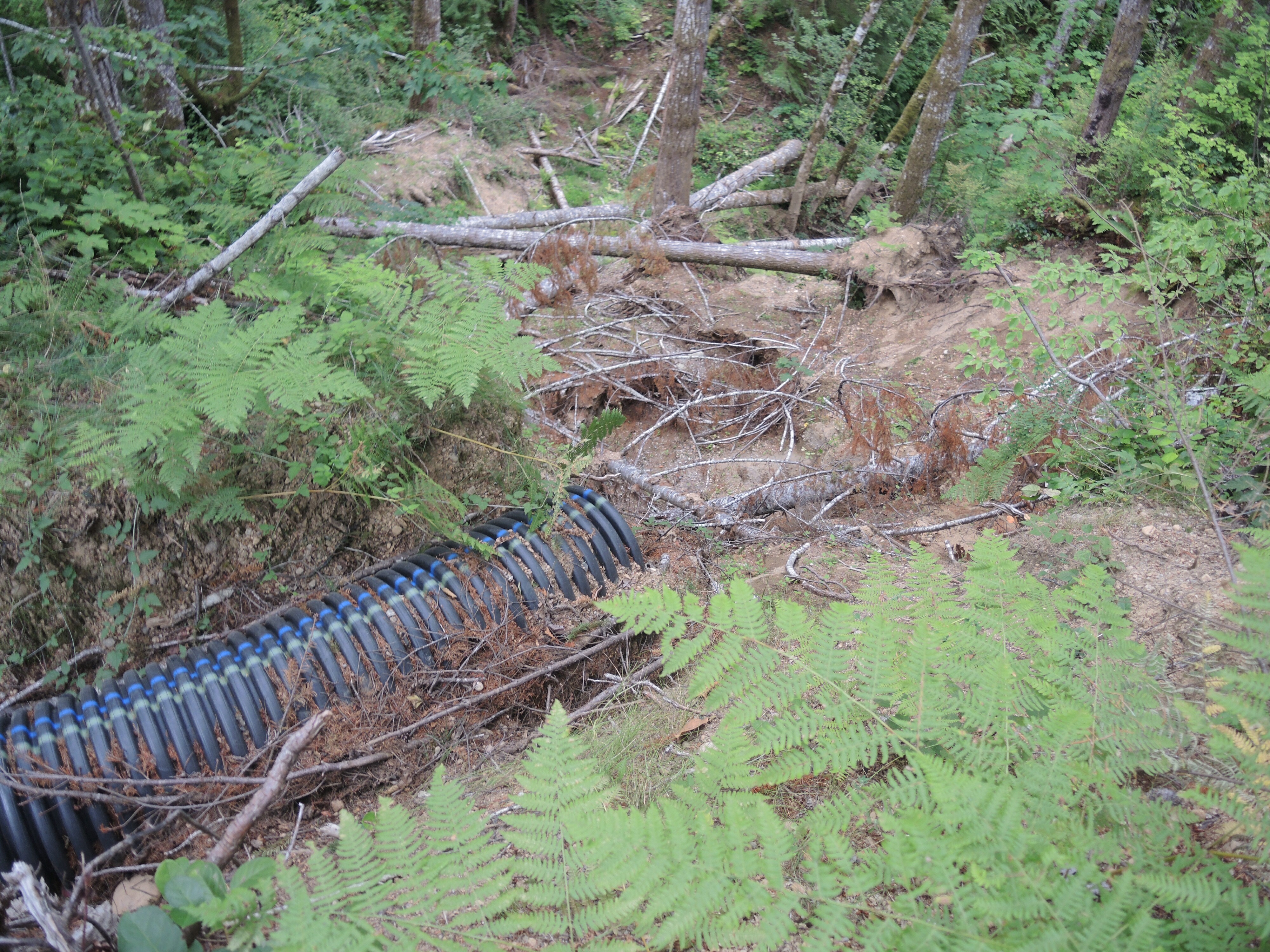 The ‘800-line’ is a private road currently closed, as of the date of this posting, to motor vehicle traffic, but used by hikers and mountain bikers. So it was that the washout on the road through the steep difficult terrain of this mountain pass was discovered. The 800-line is often opened to the public during winter months by Simpson precisely/ironically because the consequential flooding from their operations leaves residents with no ingress/egress along public roads to the Skokomish Valley or their homes.