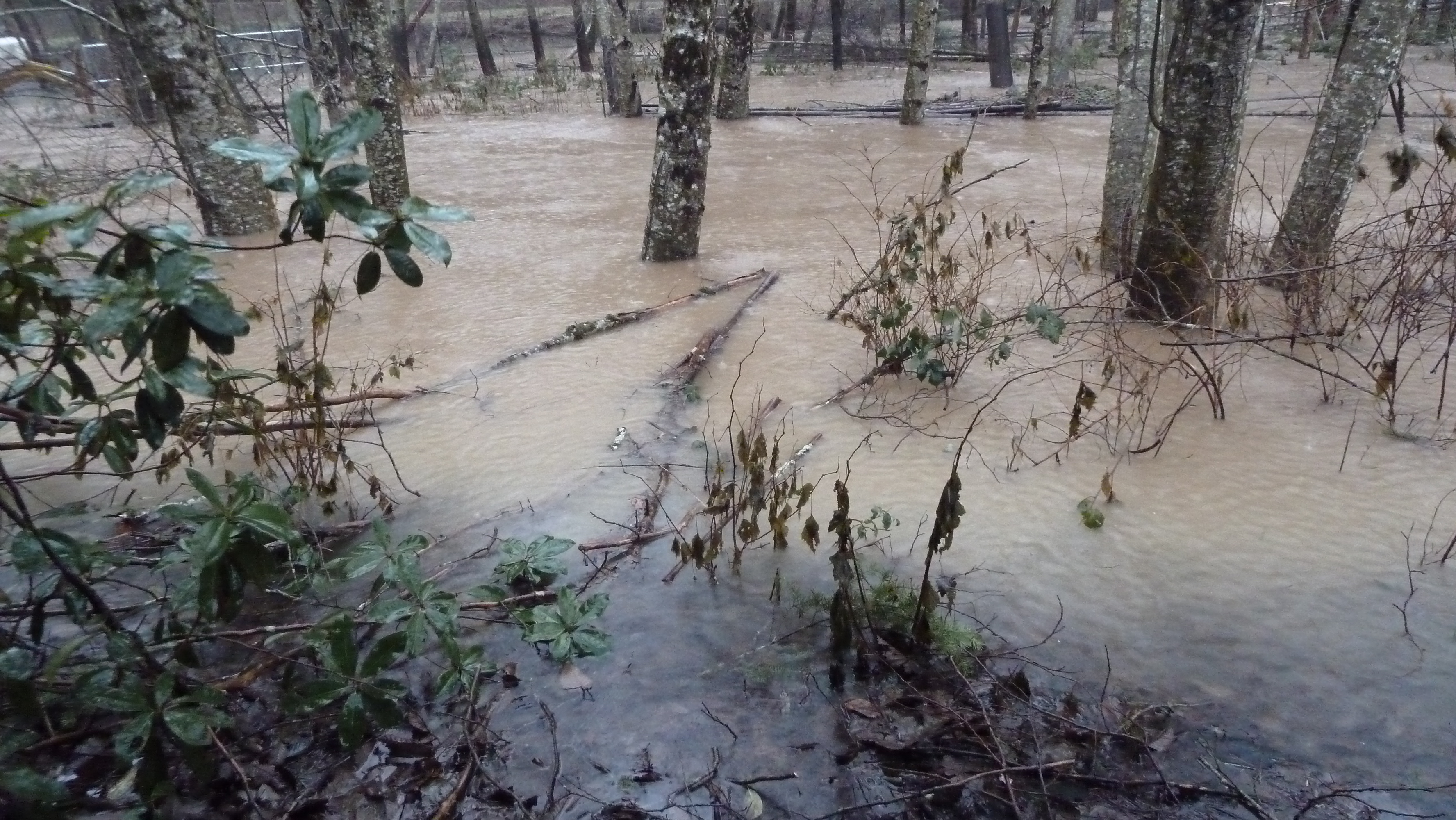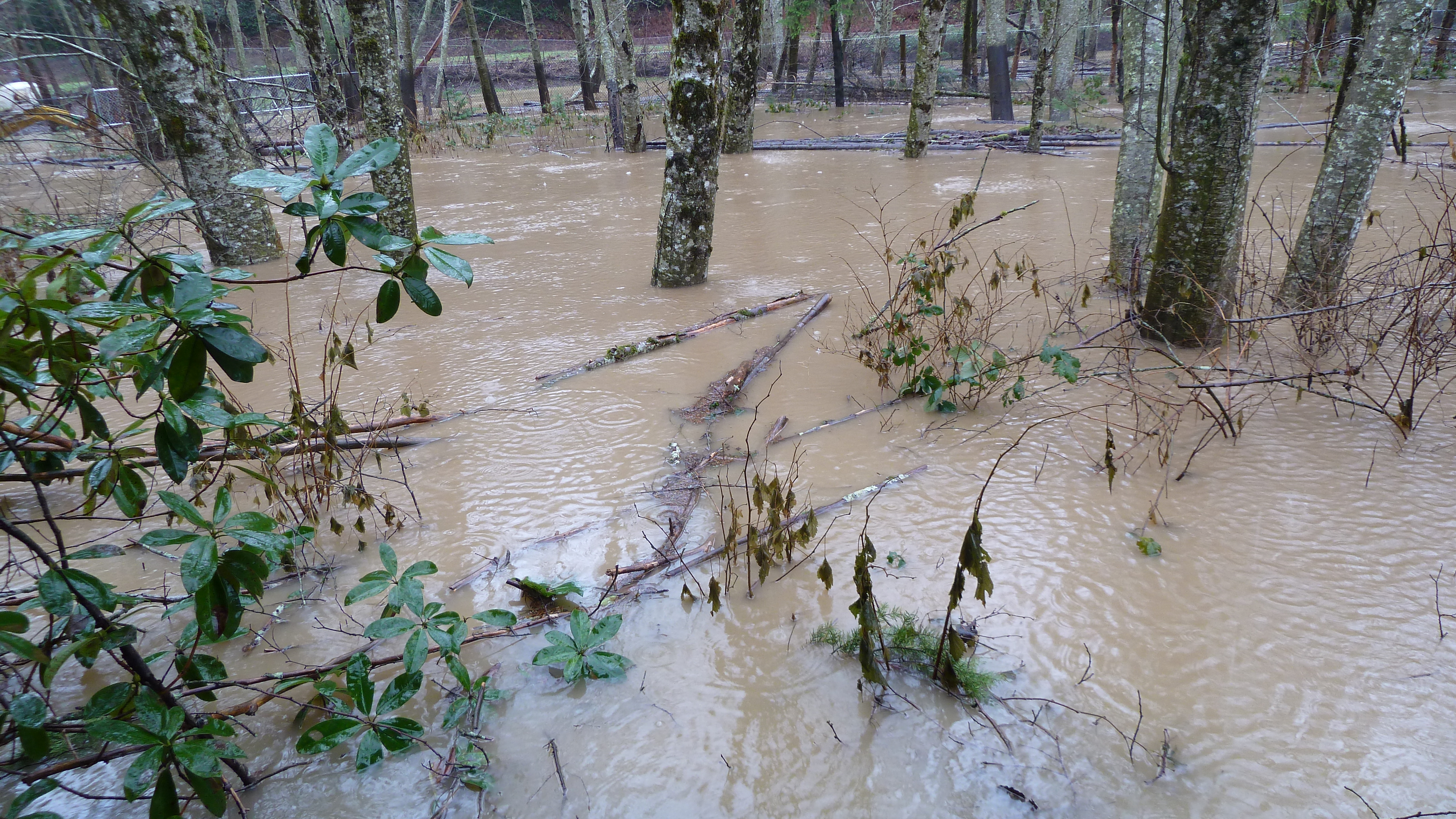 Over the years, we have witnessed a pattern of reduced buffering of flood events commensurate with the stripping of our upland woodlands by Simpson Timber Co. Notably, even wind/weather in our immediate area has been altered. Wind storms are noticeably more severe and damaging in contrast to what we witnessed when hillsides were better cloaked with standing forests.