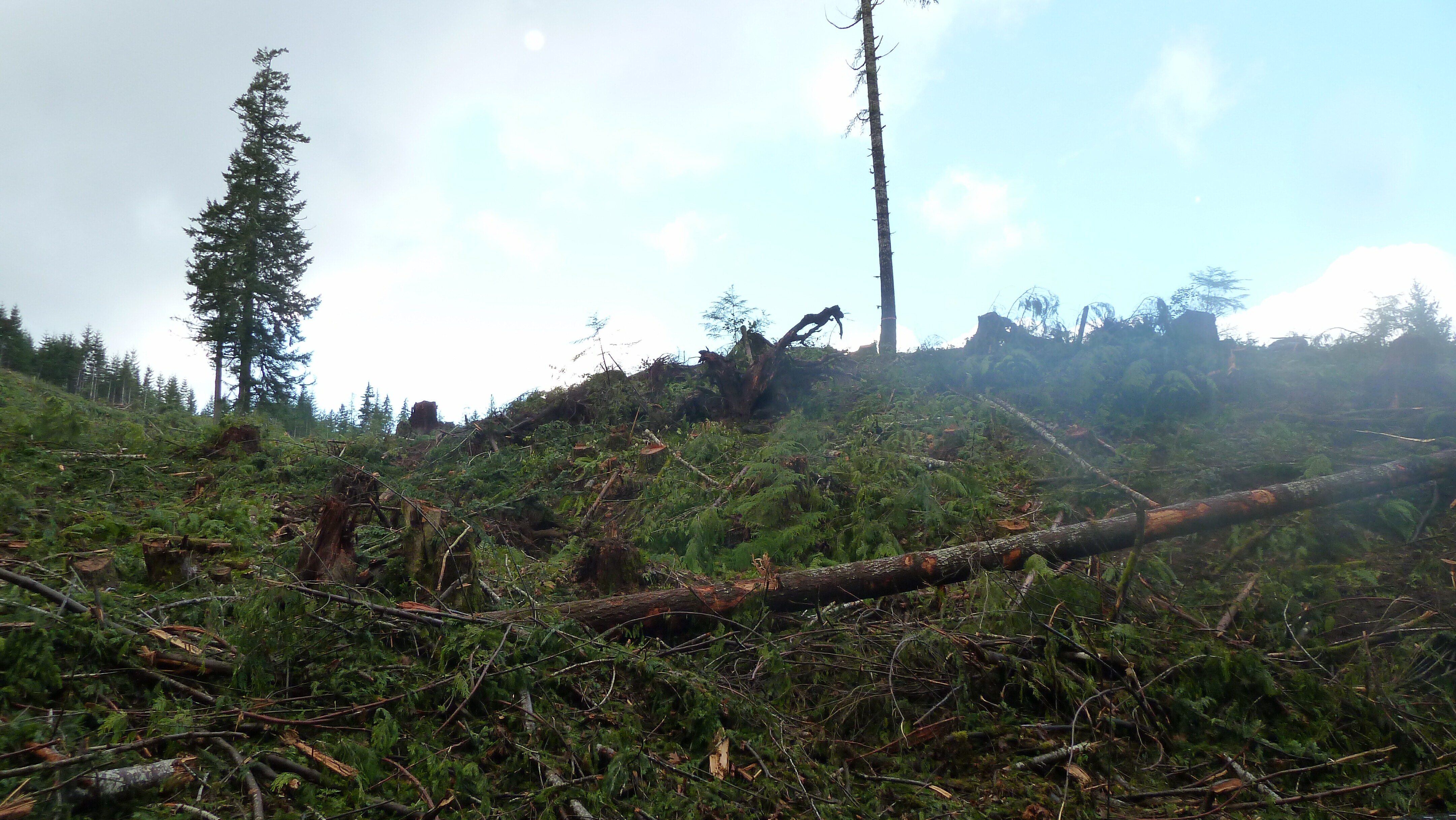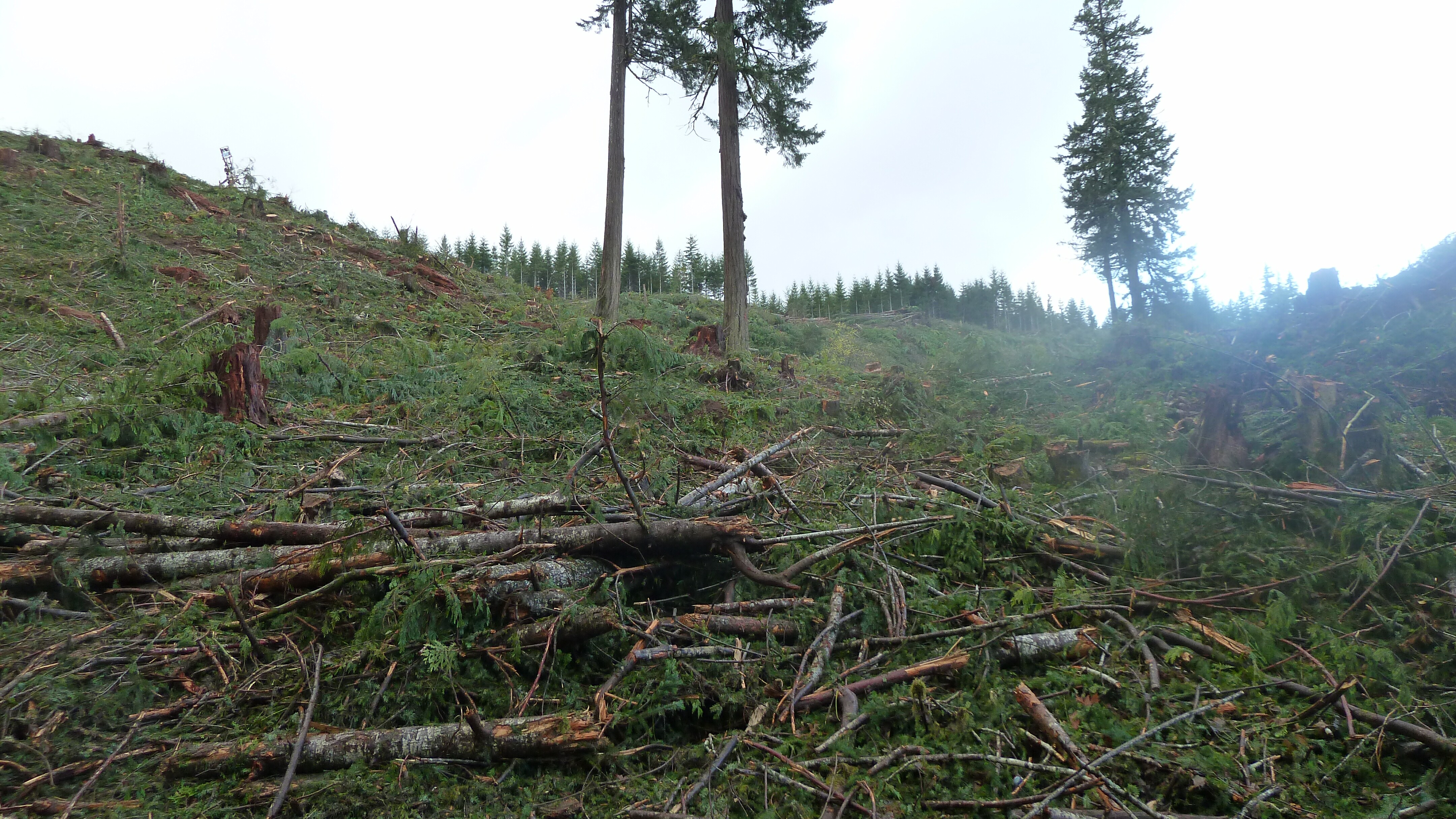 Eells Hill Rd. is a series of steep switchbacks exiting the Skokomish Valley via the south wall about 4 miles west of Hwy 101. The valley wall is several hundred feet high composed largely of sand and glacial moraine–a highly unstable combination that has led to washouts the size of canyons descending into Hunter and Weaver creeks near the State’s Eells Hill fish hatchery. Never the less, the State agency (DNR) that can’t say ‘NO’ permitted Green Diamond to clear cut its property on these steep slopes/precipices endangering the valley’s residents, as usual.